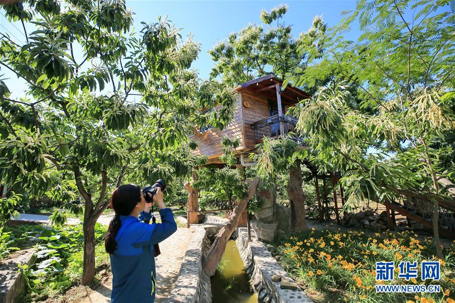 6月21日,游客在河北省遷西縣漢兒莊鄉(xiāng)一處旅游景區(qū)內(nèi)拍攝栗花。新華社記者牟宇攝