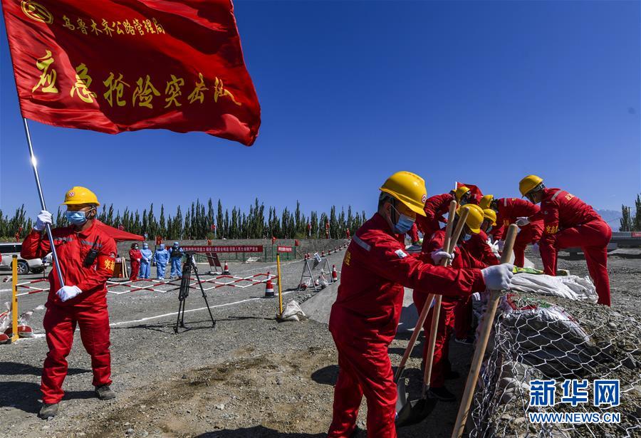 6月22日,應(yīng)急搶險(xiǎn)隊(duì)員參加演練。當(dāng)日,新疆維吾爾自治區(qū)公路管理局組織的2020年國(guó)省干線公路突發(fā)地質(zhì)災(zāi)害應(yīng)急演練在烏魯木齊舉行,演練模擬烏魯木齊市柴窩堡區(qū)域遭受強(qiáng)降雨,誘發(fā)附近水域突發(fā)洪水,公路路基面臨被洪水沖毀的險(xiǎn)情,組織搶險(xiǎn)人員和機(jī)械設(shè)備在指定時(shí)間內(nèi)趕赴受災(zāi)現(xiàn)場(chǎng)實(shí)施應(yīng)急搶險(xiǎn)處置。此次演練將進(jìn)一步增強(qiáng)各相關(guān)部門的防災(zāi)減災(zāi)意識(shí),提高公路應(yīng)急搶險(xiǎn)處突能力。新華社記者王菲攝