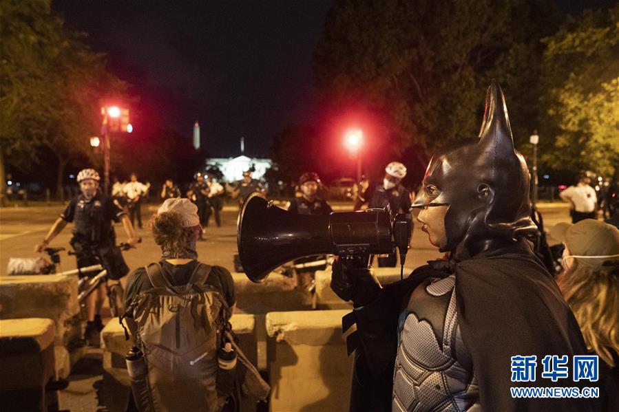6月22日,警察和示威者在美國華盛頓白宮附近對(duì)峙。美國警察和示威者22日晚在首都華盛頓市白宮北側(cè)拉斐特廣場發(fā)生沖突并對(duì)峙。美國總統(tǒng)特朗普在社交媒體上說,許多人因破壞廣場上美國前總統(tǒng)安德魯·杰克遜的雕像及附近圣約翰圣公會(huì)教堂被逮捕。新華社記者劉杰攝