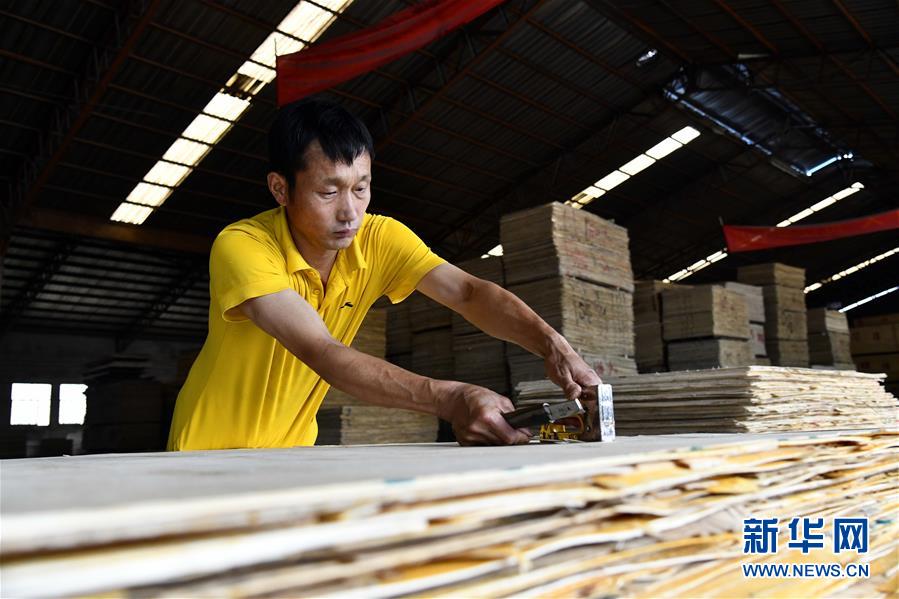 6月30日,在費(fèi)縣坤林木業(yè)有限公司,工人在整理板材原料。地處沂蒙革命老區(qū)的山東省臨沂市費(fèi)縣探沂鎮(zhèn)近年來圍繞鄉(xiāng)村振興戰(zhàn)略,謀劃“一鎮(zhèn)一業(yè)”,以木業(yè)產(chǎn)業(yè)為抓手,積極引導(dǎo)全鎮(zhèn)3136家木業(yè)企業(yè)進(jìn)行園區(qū)化、集約化、智能化發(fā)展,成為遠(yuǎn)近聞名的“木業(yè)特色小鎮(zhèn)”。2019年,該鎮(zhèn)規(guī)模以上工業(yè)總產(chǎn)值187億元,農(nóng)民人均純收入2萬元左右,木業(yè)產(chǎn)業(yè)有力助推當(dāng)?shù)氐泥l(xiāng)村振興。新華社記者郭緒雷攝