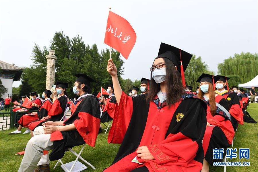7月2日,北京大學(xué)2020屆畢業(yè)生在畢業(yè)典禮上。當(dāng)日,北京大學(xué)舉行2020年畢業(yè)典禮。由于疫情防控需要,今年的典禮在北京大學(xué)辦公樓西側(cè)廣場、靜園草坪、未名湖等九個會場舉行,并面向全球進(jìn)行中英文雙語直播,僅部分在校畢業(yè)生現(xiàn)場參加,更多畢業(yè)生通過線上直播參與畢業(yè)典禮。新華社記者任超攝