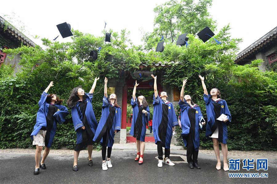 7月2日,在北京大學(xué)靜園三院門口,畢業(yè)生在拋碩士帽。當(dāng)日,北京大學(xué)舉行2020年畢業(yè)典禮。由于疫情防控需要,今年的典禮在北京大學(xué)辦公樓西側(cè)廣場、靜園草坪、未名湖等九個會場舉行,并面向全球進(jìn)行中英文雙語直播,僅部分在校畢業(yè)生現(xiàn)場參加,更多畢業(yè)生通過線上直播參與畢業(yè)典禮。新華社記者任超攝