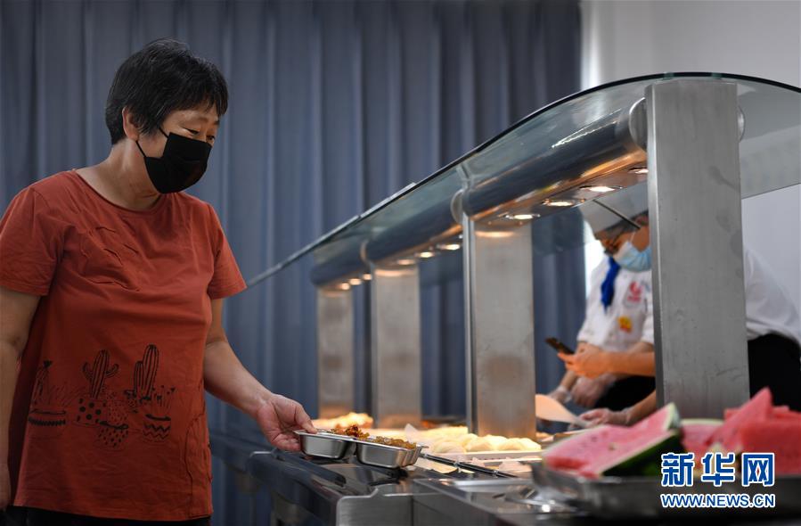 7月7日,老人在付村康養(yǎng)中心(老人家食堂)打餐。近日,天津市西青區(qū)精武鎮(zhèn)付村康養(yǎng)中心(老人家食堂)運營已步入正軌。該老人家食堂面積約850平方米,由專業(yè)餐飲企業(yè)負責(zé)日常運營,并享受政府補貼,可滿足付村及周邊老人的就餐需求,還能提供外帶、送餐服務(wù)。據(jù)了解,為切實解決老年人吃飯難問題、增加老年人幸福感,西青區(qū)將老人家食堂建設(shè)納入2020年區(qū)政府民心工程。目前,已建成51家老人家食堂。新華社記者李然攝
