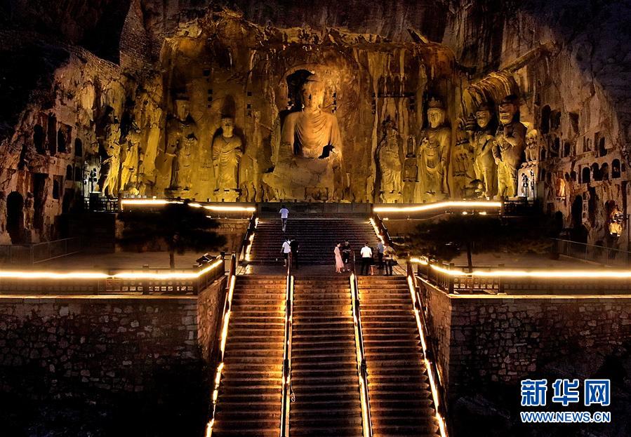 7月7日,游客在洛陽龍門石窟景區(qū)奉先寺夜游(無人機(jī)照片)。近日,河南洛陽的夜晚愈發(fā)繽紛多彩。立足于厚重的隋唐文化底蘊(yùn),洛陽正通過創(chuàng)新夜游產(chǎn)品打響“古都夜八點(diǎn)”品牌,激活文旅消費(fèi)。新華社記者李安攝