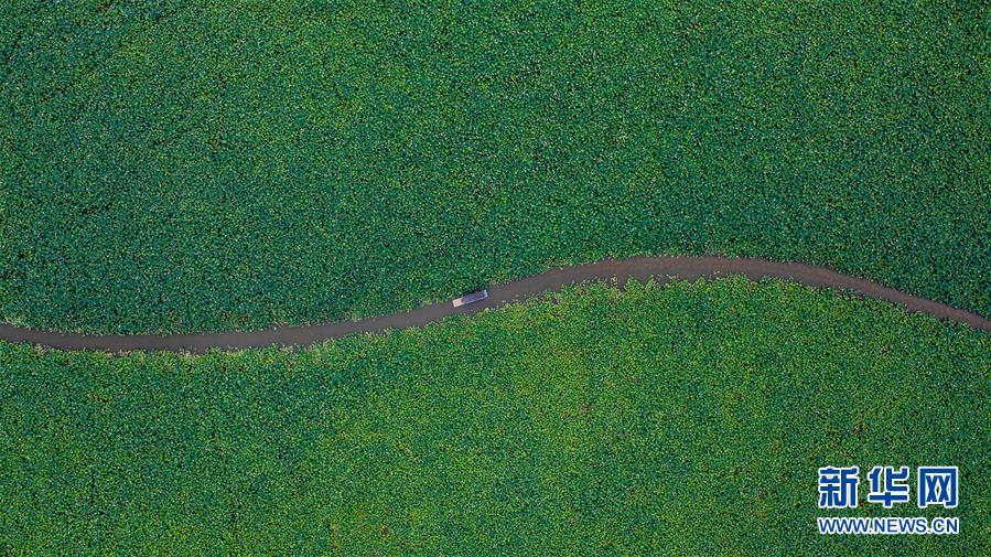 游人在普者黑國(guó)家濕地公園泛舟賞景(7月10日攝,無(wú)人機(jī)照片)。新華社記者 胡超 攝