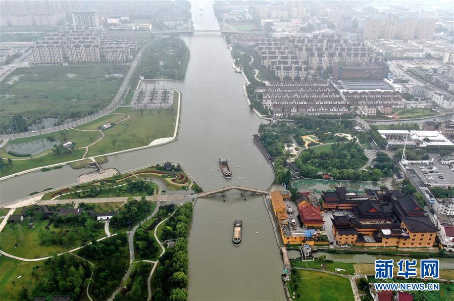 7月17日拍攝的秀洲區(qū)王江涇鎮(zhèn)長(zhǎng)虹橋附近的河道(無人機(jī)照片)。浙江省嘉興市秀洲區(qū)處在杭嘉湖平原,受持續(xù)強(qiáng)降雨及上游排水影響,近期,秀洲區(qū)境內(nèi)的京杭大運(yùn)河分支航道持續(xù)保持較高水位。當(dāng)?shù)叵嚓P(guān)部門嚴(yán)陣以待,落實(shí)各項(xiàng)措施,確保安全度汛。新華社記者韓傳號(hào)攝