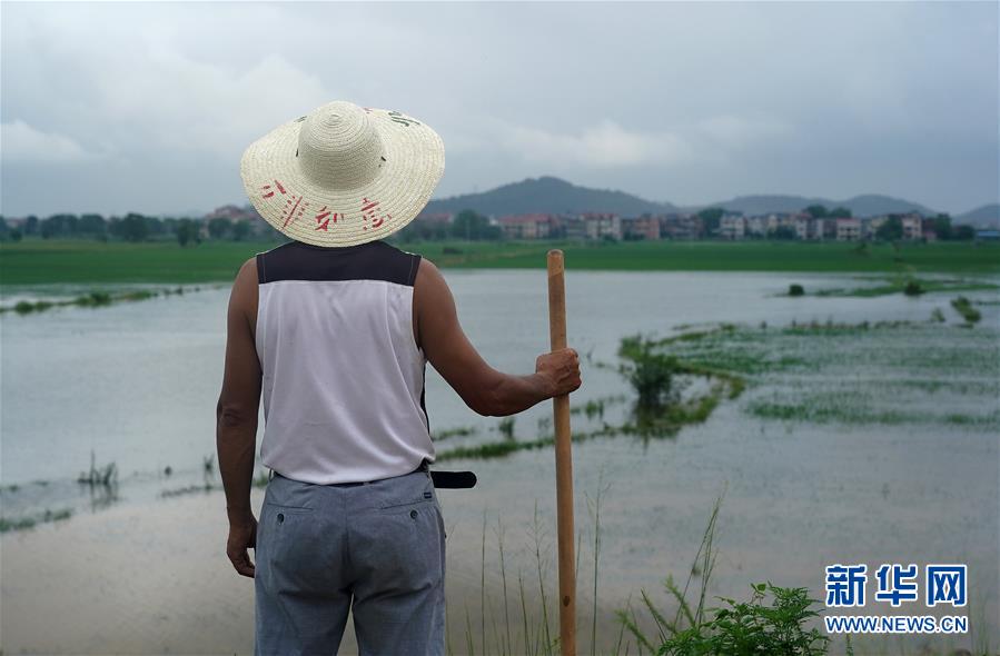 7月9日,邵忠如在圩堤上觀察水情,不遠處就是他的村子。邵忠如是江西省樂平市樂港鎮(zhèn)邵灣村黨支部書記,今年56歲,負責中洲圩中一段700多米長的圩堤的巡堤守堤工作。身前是洪水,身后是村子和稻田,老邵不敢有半點疏忽。6天6夜,老邵和村民們不間斷地值守在圩堤上,一天4個班,一班6人,每半小時巡堤一次,發(fā)現險情立即處置。作為村支書,老邵更是幾乎全天都在圩堤上,實在困了才會睡一會兒。新華社記者萬象攝