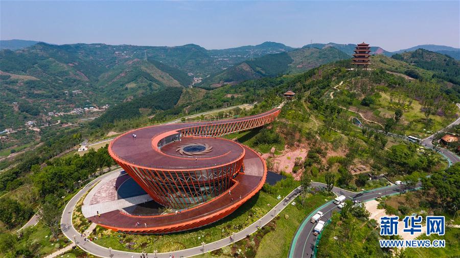 這是6月15日拍攝的四川省成都市龍泉山城市森林公園丹景山觀景臺(無人機(jī)照片)。新華社記者王曦?cái)z