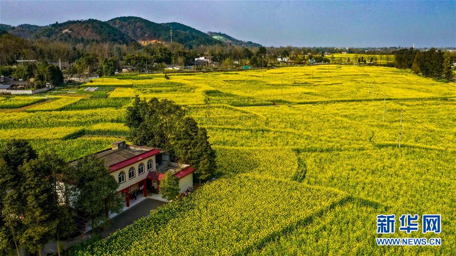 這是2月25日在四川省崇州市重慶路拍攝的油菜花田(無人機(jī)照片)。新華社記者王曦?cái)z