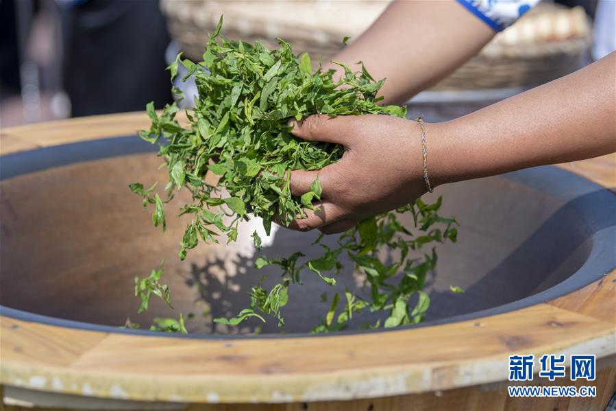 7月20日,參賽選手在位于安澤縣飛嶺村的斗茶文化主題活動(dòng)現(xiàn)場(chǎng)制茶。新華社記者楊晨光攝