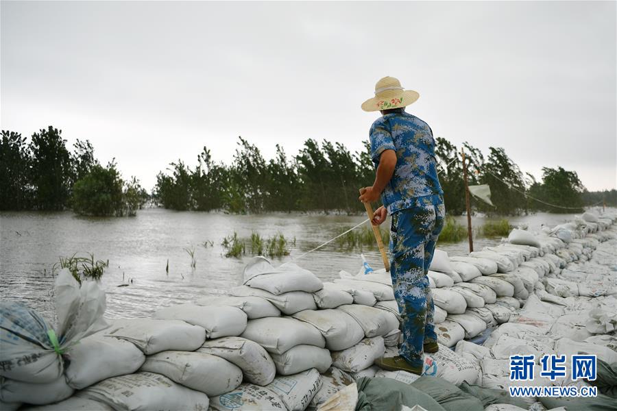 劉良武在江洲鎮(zhèn)的長江堤壩上巡查(7月19日攝)。
