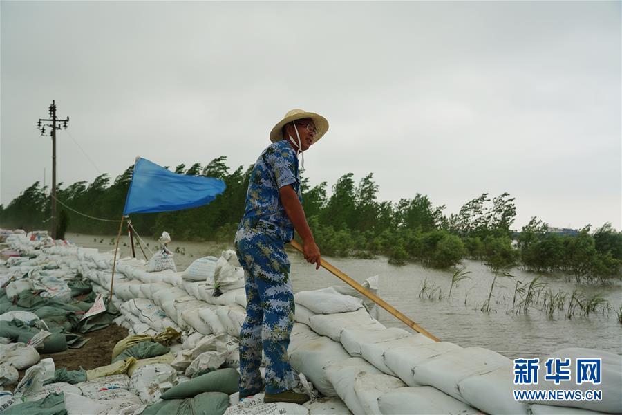 劉良武在江洲鎮(zhèn)的長(zhǎng)江堤壩上巡查(7月19日攝)。新華社記者李鑫攝