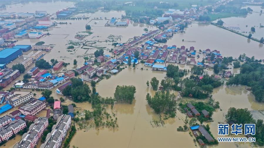 這是7月20日拍攝的六安市裕安區(qū)固鎮(zhèn)鎮(zhèn)被淹的街道(無人機(jī)照片)。近日,安徽省六安市裕安區(qū)固鎮(zhèn)鎮(zhèn)遭受嚴(yán)重洪澇災(zāi)害,多個(gè)村莊被淹,道路中斷。目前,多支救援力量在現(xiàn)場轉(zhuǎn)移受災(zāi)群眾。新華社記者湯陽攝