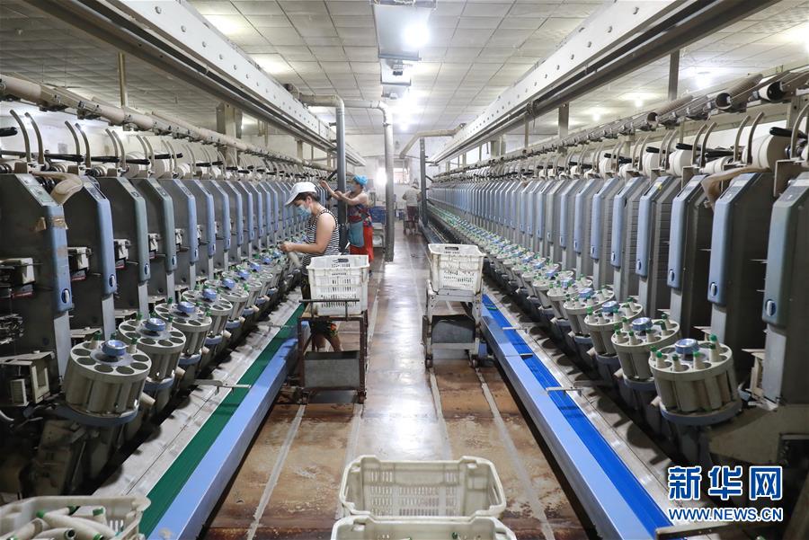 7月20日,工人在灤南縣長凝鎮(zhèn)的一家紡織廠生產(chǎn)車間里工作。近年來,河北省灤南縣大力發(fā)展村邊民營企業(yè),引導(dǎo)企業(yè)在鄉(xiāng)鎮(zhèn)村邊建廠,帶動當(dāng)?shù)?萬多名農(nóng)村群眾在村邊就近就業(yè),實現(xiàn)穩(wěn)步增收。新華社記者楊世堯攝