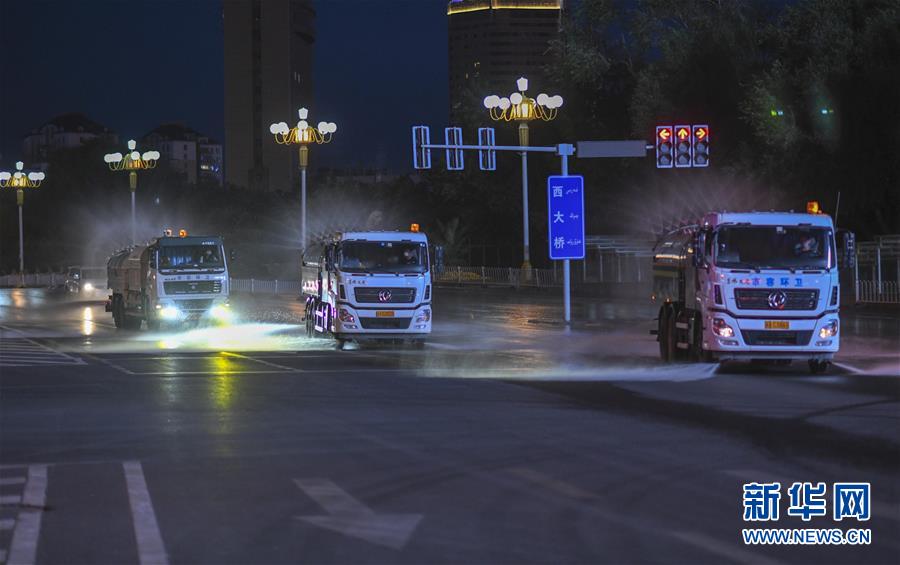 7月20日,烏魯木齊市天山區(qū)城管局清運(yùn)隊(duì)的三臺(tái)工作車輛在市區(qū)光明路進(jìn)行消殺作業(yè)。烏魯木齊市天山區(qū)城管局自7月17日起,對(duì)天山區(qū)的主次干道76條及235條巷道進(jìn)行集中消殺。目前,烏魯木齊市對(duì)重點(diǎn)區(qū)域進(jìn)行全面消毒消殺。新華社記者趙戈攝