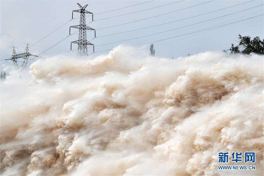 7月21日,劉家峽水庫(kù)正在泄洪。新華社記者陳斌攝