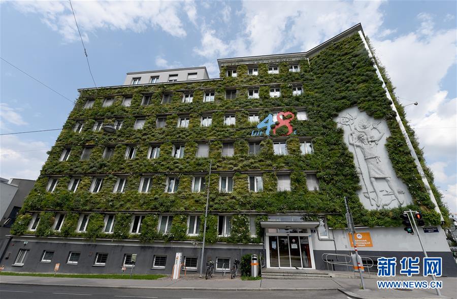 這是7月22日拍攝的奧地利維也納市政管理局廢物處理辦公總部(MA48)外景。奧地利首都維也納的市政管理局廢物處理辦公總部的外墻被種植的綠色植物覆蓋,成為了維也納市建設(shè)綠色城市、節(jié)能減排的“示例樓”。據(jù)介紹,這個(gè)外墻項(xiàng)目建立于2010年,每年在夏季為該建筑自然降溫、增加濕度,從而減少空調(diào)的使用,并可吸收二氧化碳。維也納市政府提倡市內(nèi)建筑建設(shè)綠色外墻,并提供資金支持。新華社記者郭晨攝