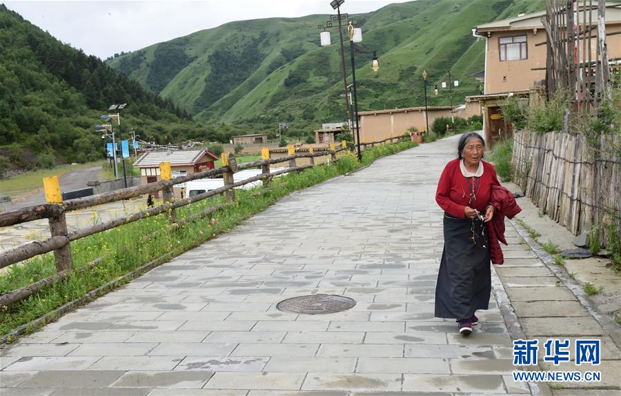 7月5日,一名藏族村民走在阿壩縣查理鄉(xiāng)神座村里。新華社記者陳燮攝