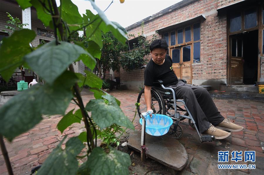 7月22日,王紅彬在自家院里接水。新華社記者朱旭東攝