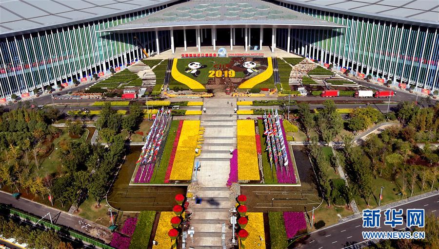 從空中俯瞰國家會展中心(上海)南廣場(2019年11月1日,無人機照片)。新華社記者 凡軍 攝