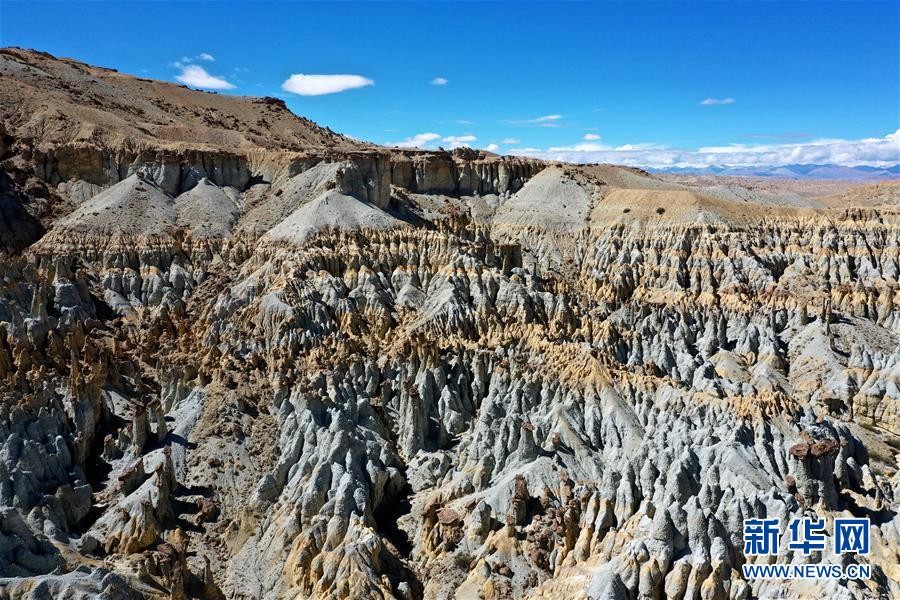這是7月26日在西藏阿里地區(qū)札達(dá)縣托林鎮(zhèn)拍攝的札達(dá)土林(無人機(jī)照片)。札達(dá)土林位于西藏阿里地區(qū)札達(dá)縣境內(nèi),千姿百態(tài)的土林與藍(lán)天、白云相互映襯,景色壯美。新華社記者 詹彥 攝