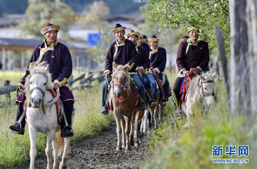 農(nóng)牧民在魯朗旅游小鎮(zhèn)騎行(7月26日攝)。新華社記者 張汝鋒 攝