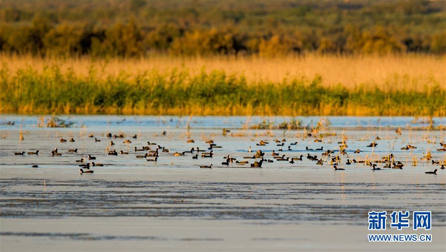7月28日,成群候鳥(niǎo)在桃力廟—阿拉善灣海子覓食。鄂爾多斯?jié)竦匚挥趲?kù)布齊沙漠、毛烏素沙地接壤地帶,2002年被列入國(guó)際重要濕地名錄。從2006年開(kāi)始,由于濕地湖面萎縮、湖心島消失,在此筑巢繁殖的世界瀕危物種遺鷗幾近消失。近年來(lái),當(dāng)?shù)夭扇《喾N治理措施,濕地生態(tài)環(huán)境逐步好轉(zhuǎn)。2019年起,濕地內(nèi)的桃力廟—阿拉善灣海子迎來(lái)遺鷗大規(guī)?!盎貧w”。如今,40多種鳥(niǎo)類在此棲息,鄂爾多斯?jié)竦刂匦鲁蔀轼B(niǎo)類的樂(lè)園。新華社記者連振攝