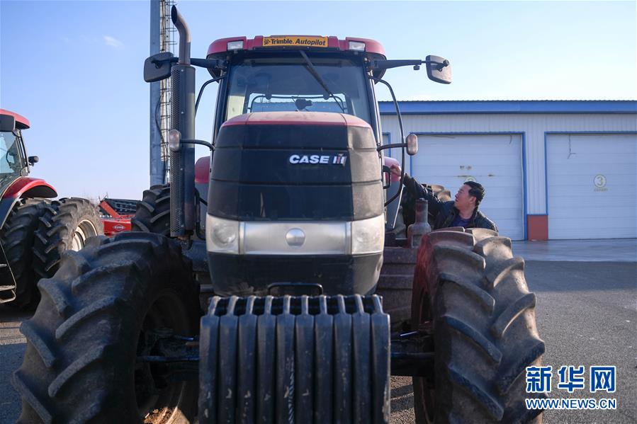 3月11日,農民在吉林省榆樹市的一家農業(yè)機械種植專業(yè)合作社內檢修農機。新華社記者顏麟蘊攝