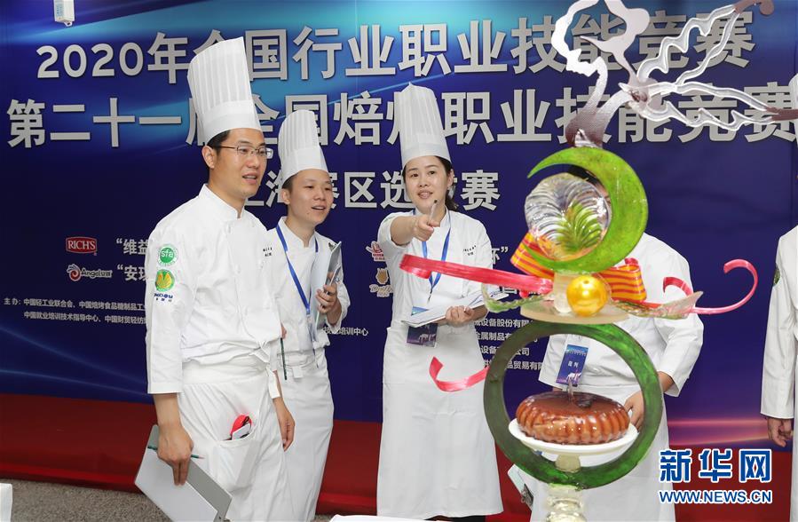 8月5日,評委在作品展示區(qū)為選手的作品打分。當(dāng)日,第二十一屆全國焙烤職業(yè)技能競賽上海賽區(qū)選拔賽,在上海市現(xiàn)代食品職業(yè)技能培訓(xùn)中心舉行,來自上海、江蘇、浙江等地的近60名焙烤行業(yè)技師,在藝術(shù)面包、傳統(tǒng)糕點(diǎn)、糖藝和藝術(shù)巧克力等項(xiàng)目中進(jìn)行比拼,在充滿焙烤香氣的賽場上展現(xiàn)技藝。新華社記者方喆攝