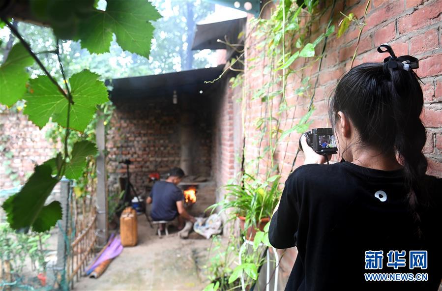 8月4日,王曉楠在家中拍攝短視頻。新華社記者郝源攝