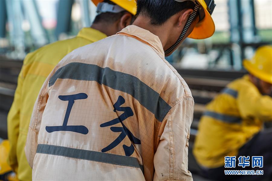 8月6日,橋隧工的工作服在作業(yè)時(shí)被汗水浸濕。新華社記者李博攝