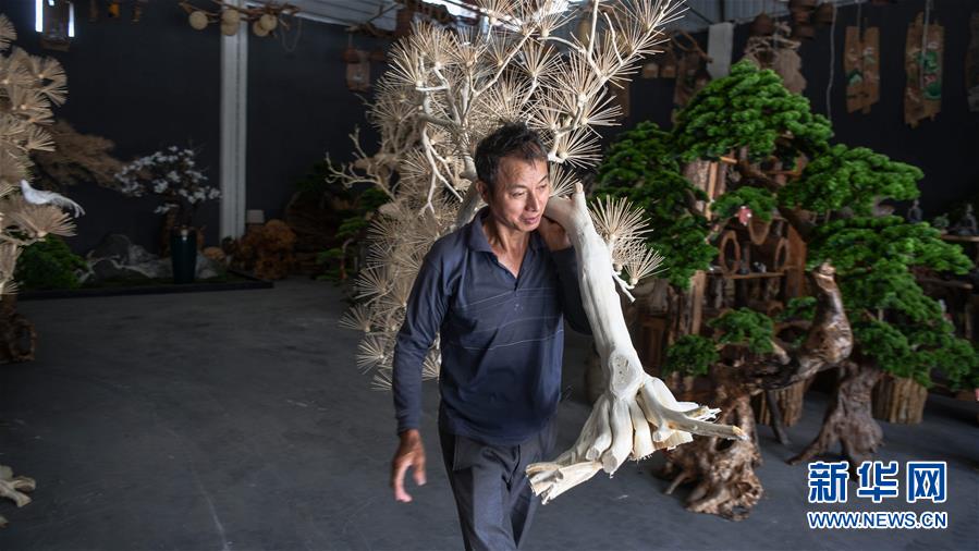 8月7日,一名工人在永福縣永安鄉(xiāng)根雕工藝品就業(yè)扶貧車間搬運(yùn)根雕半成品。2017年以來,廣西桂林市永??h永安鄉(xiāng)通過幫扶返鄉(xiāng)青年創(chuàng)業(yè)的方式,建立起根雕工藝品就業(yè)扶貧車間,組織貧困群眾進(jìn)車間務(wù)工學(xué)藝,把當(dāng)?shù)刎S富的朽木和柑橘樹根枝資源利用起來,加工成盆景、茶桌、吊燈等根雕工藝品,不僅幫助貧困群眾在家門口掌握一技之長,還讓他們?cè)诿撠氄焙髮?shí)現(xiàn)穩(wěn)定增收。新華社記者張愛林?jǐn)z