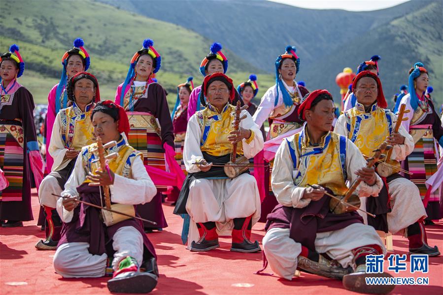 8月7日,在西藏首屆弦子舞展演現(xiàn)場,演出人員在表演弦子舞。當(dāng)日,西藏首屆弦子舞展演在昌都市芒康縣舉行。眾多演員同臺(tái)獻(xiàn)藝,表演國家級(jí)非物質(zhì)文化遺產(chǎn)弦子舞,吸引西藏各地的群眾前來觀看。新華社記者孫非攝