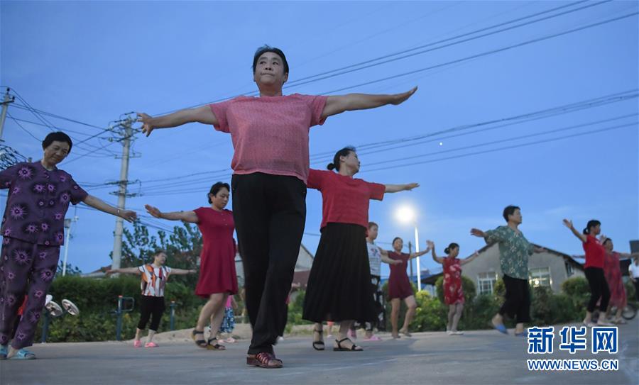鄂州市長港鎮(zhèn)峒山村村民在鍛煉身體(8月6日攝)。新華社記者 程敏 攝
