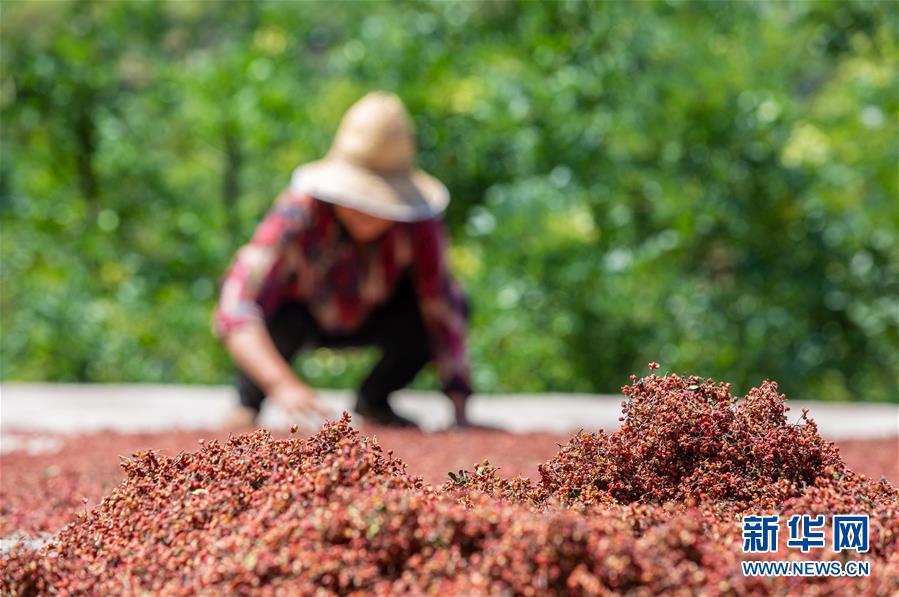 8月9日,武安市徘徊鎮(zhèn)后李甲村農(nóng)民在涼曬采摘的花椒。近日,河北省武安市花椒進入收獲季節(jié),當(dāng)?shù)剞r(nóng)民搶抓農(nóng)時,花椒種植基地里一派忙碌景象。近年來,武安市將花椒產(chǎn)業(yè)作為脫貧增收的重要抓手,因地制宜擴大花椒種植規(guī)模。目前,全市花椒種植面積約12萬畝。新華社記者王曉攝。