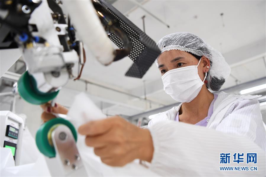 8月9日,甘肅拓奇扶貧車(chē)間的員工在服裝加工生產(chǎn)線(xiàn)上作業(yè)。甘肅拓奇扶貧車(chē)間位于甘肅省臨夏回族自治州積石山縣,是依托東西部扶貧協(xié)作平臺(tái)引進(jìn)的服裝加工企業(yè)。扶貧車(chē)間建成投產(chǎn)以來(lái)帶動(dòng)就業(yè)近300人,其中吸納建檔立卡貧困戶(hù)就業(yè)110人,實(shí)現(xiàn)了貧困群眾就地就近就業(yè)增收的目的,為助推當(dāng)?shù)孛撠毠?jiān)及縣域經(jīng)濟(jì)發(fā)展發(fā)揮了重要作用。新華社記者陳斌攝。