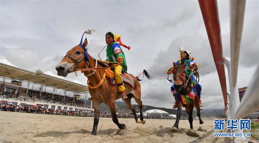 8月10日,騎手馳騁在當雄縣賽馬場。新華社記者晉美多吉攝。