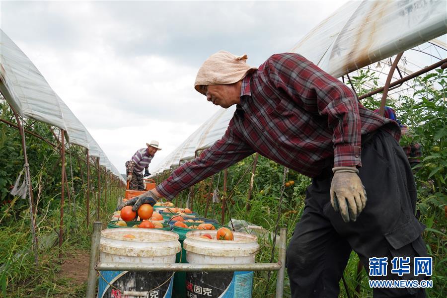 8月11日,在寧安市慶雨蔬菜專業(yè)合作社蔬菜產業(yè)園基地,工人把剛采摘下來的西紅柿裝入桶中準備運走。近年來,黑龍江省寧安市把設施蔬菜作為精準扶貧的主導產業(yè)來抓,組織吸納貧困戶貸資加入產業(yè)合作社,帶動貧困戶脫貧增收。寧安市將全市500余戶貧困戶的小額信貸資金集中投放到寧安市慶雨蔬菜專業(yè)合作社,建設蔬菜產業(yè)園基地,在帶動貧困戶脫貧增收的同時,壯大合作社蔬菜產業(yè)。新華社記者王建威攝。