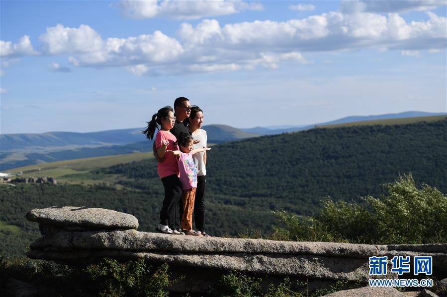 游客在克什克騰石陣景區(qū)游玩(8月11日攝)??耸部蓑v旗位于內(nèi)蒙古自治區(qū)赤峰市西北部,境內(nèi)的湖泊、河流、草原、森林等自然景觀,讓人們流連忘返。新華社記者劉磊攝