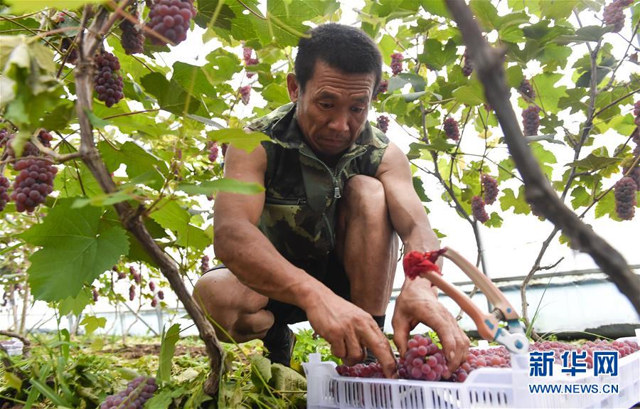 8月13日,在吉林省磐石市煙筒山鎮(zhèn)民主村,村民在葡萄大棚內(nèi)采摘葡萄。時下,吉林省磐石市煙筒山鎮(zhèn)棚膜葡萄園區(qū)內(nèi)的大棚葡萄進(jìn)入采摘季,農(nóng)民喜獲豐收。近年來,當(dāng)?shù)赝ㄟ^“共創(chuàng)”與“扶持”相結(jié)合的模式大力發(fā)展特色農(nóng)業(yè),建設(shè)葡萄種植大棚300余棟,以此帶動村集體經(jīng)濟(jì)發(fā)展,助力農(nóng)民增收致富。新華社記者許暢攝