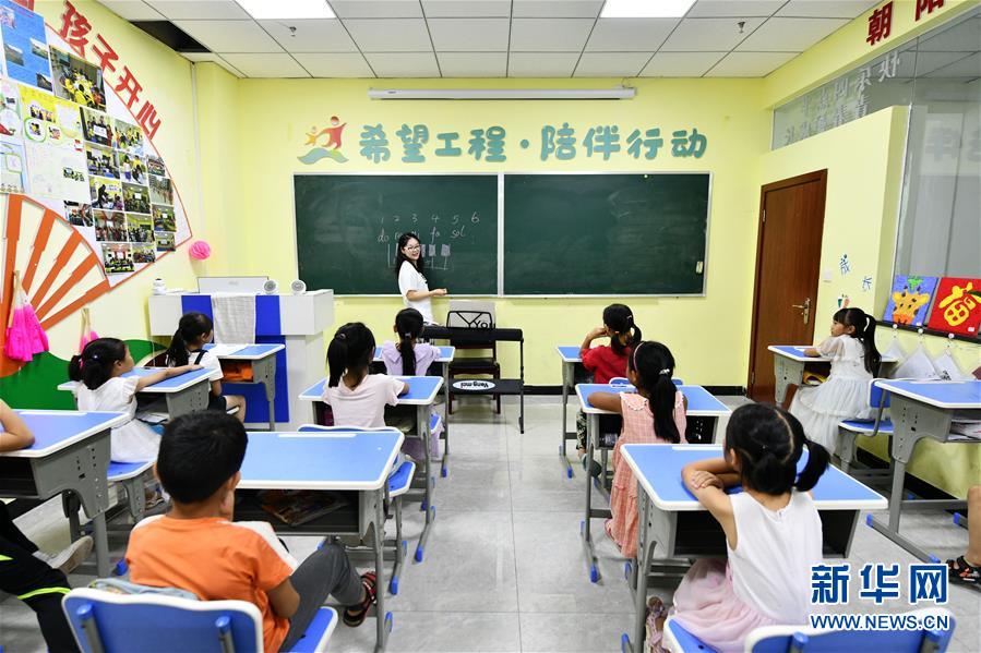 8月13日,在貴州省思南縣雙塘街道麗景社區(qū)易地扶貧搬遷安置點(diǎn),志愿者在給孩子們上音樂(lè)課。今年暑假期間,在貴州省銅仁市思南縣雙塘街道麗景社區(qū)易地扶貧搬遷安置點(diǎn),來(lái)自北京有研集團(tuán)和思南當(dāng)?shù)氐闹驹刚邆兝檬钇跁r(shí)間,給安置點(diǎn)的孩子們進(jìn)行音樂(lè)、體育、手工、安全教育等課程輔導(dǎo),幫助搬遷戶照看孩子,讓孩子們?cè)趯W(xué)習(xí)中度過(guò)一個(gè)快樂(lè)而有意義的暑假。新華社記者楊文斌攝