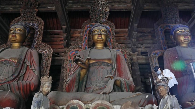 日前,建于1020年的遼寧錦州義縣奉國(guó)寺開始進(jìn)行彩繪泥塑一期保護(hù)修復(fù)工程。