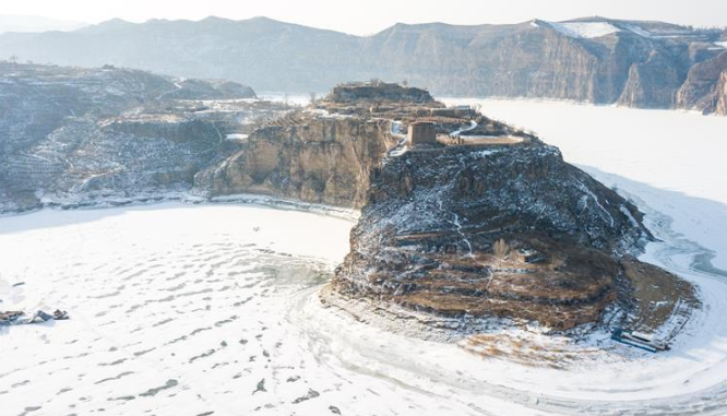 這是2月17日無人機(jī)拍攝的老牛灣雪景。黃河老牛灣位于山西省和內(nèi)蒙古自治區(qū)交界處。