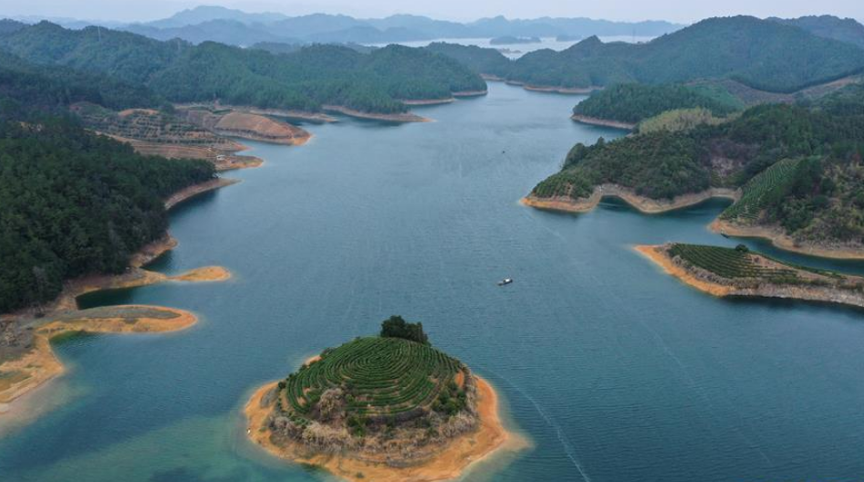 當(dāng)日,浙江省淳安縣春茶全面開采,千島湖上星星點(diǎn)點(diǎn)的“島嶼茶園”浮在碧波之上,如夢(mèng)似幻。