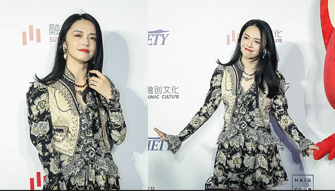 女演員姚晨亮相,穿黑白泡泡袖印花連衣裙,戴項鏈優(yōu)雅迷人