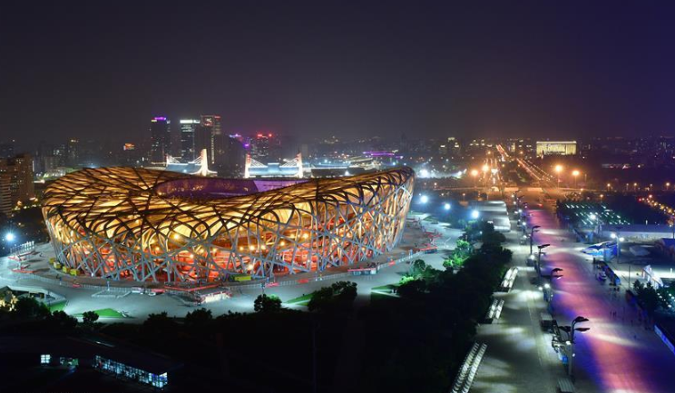 5月14日,國家會議中心和奧林匹克塔交相輝映。 當(dāng)晚,一場“空間光影秀”在北京上演。