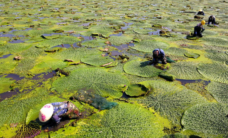 罕見(jiàn)的壯觀場(chǎng)面!萬(wàn)余畝芡實(shí)迎來(lái)收獲季