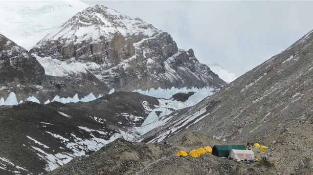 從海拔5800米的珠峰過(guò)渡營(yíng)地到海拔6500米的前進(jìn)營(yíng)地,冰塔林沿山谷排列,蔚為壯觀。