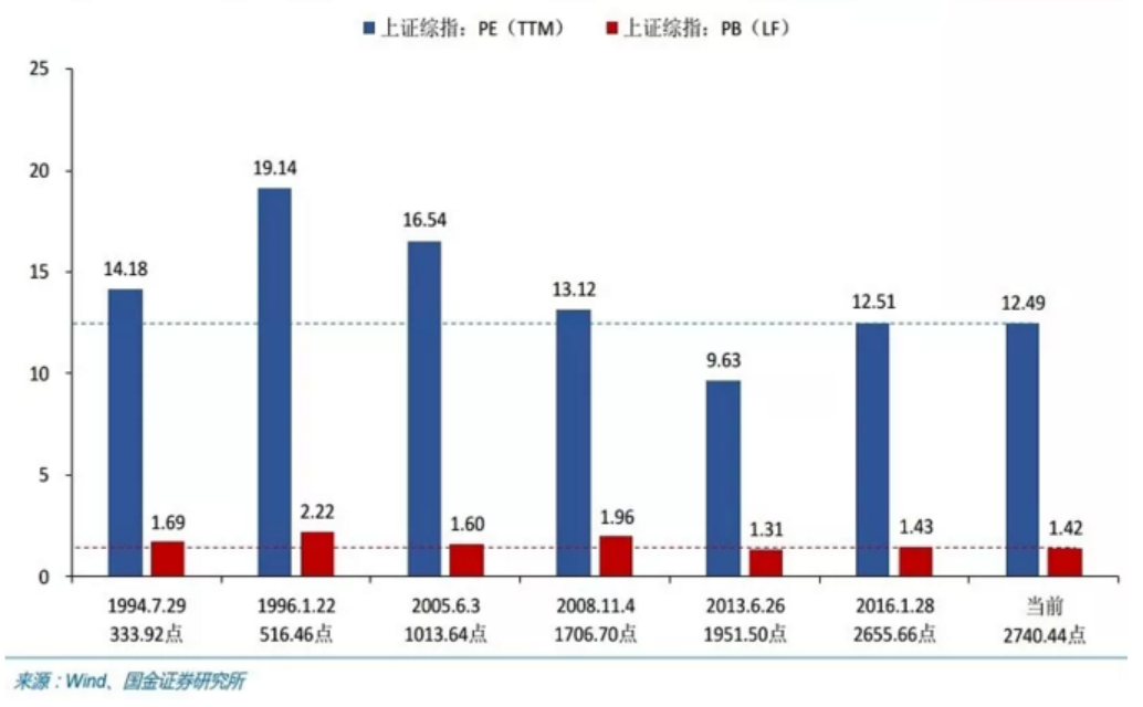 估值處于歷史第二底部:除上證A股外,其他板塊估值全面低于2014年低點,深證A股和中小板幾乎與2012年12月份的低點持平。對比上證綜指歷次歷史大底的市盈率和市凈率來看,當(dāng)前估值僅略高于2013年1951點的時候,在7次歷史大底中位列倒數(shù)第二。
