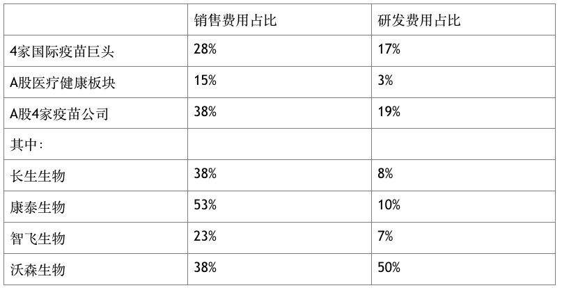 從科研投入來(lái)看,其與國(guó)際巨頭亦存在巨大差距。以A股為例,目前上市有4家以疫苗為主業(yè)的企業(yè)。Wind數(shù)據(jù)顯示,2017年4家疫苗公司總銷售費(fèi)用達(dá)18億元,占營(yíng)業(yè)收入38%;4家國(guó)際疫苗巨頭(輝瑞、默沙東、賽諾菲、GSK)總銷售費(fèi)用占比28%。反觀研發(fā)費(fèi)用,A股醫(yī)療保健板塊總研發(fā)費(fèi)用319億元,占總營(yíng)業(yè)收入的2.8%;4家疫苗公司除沃森生物外,研發(fā)費(fèi)用占比均未超過10%;4家國(guó)際疫苗巨頭總研發(fā)費(fèi)用占比17%。